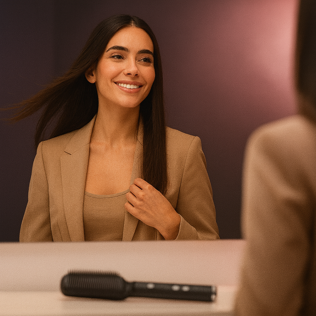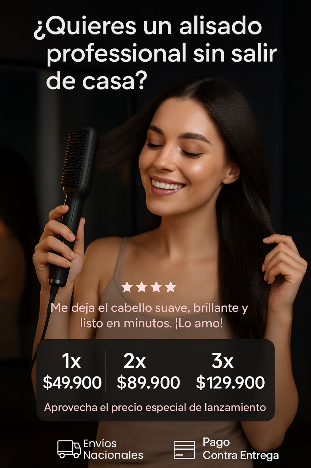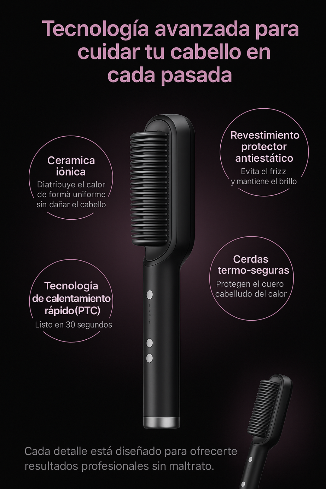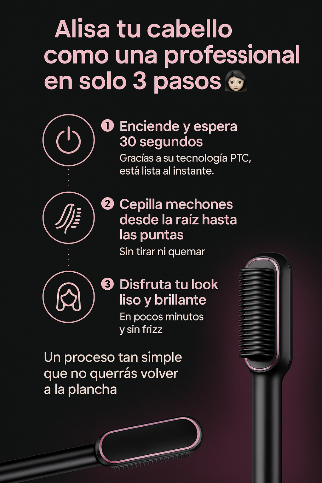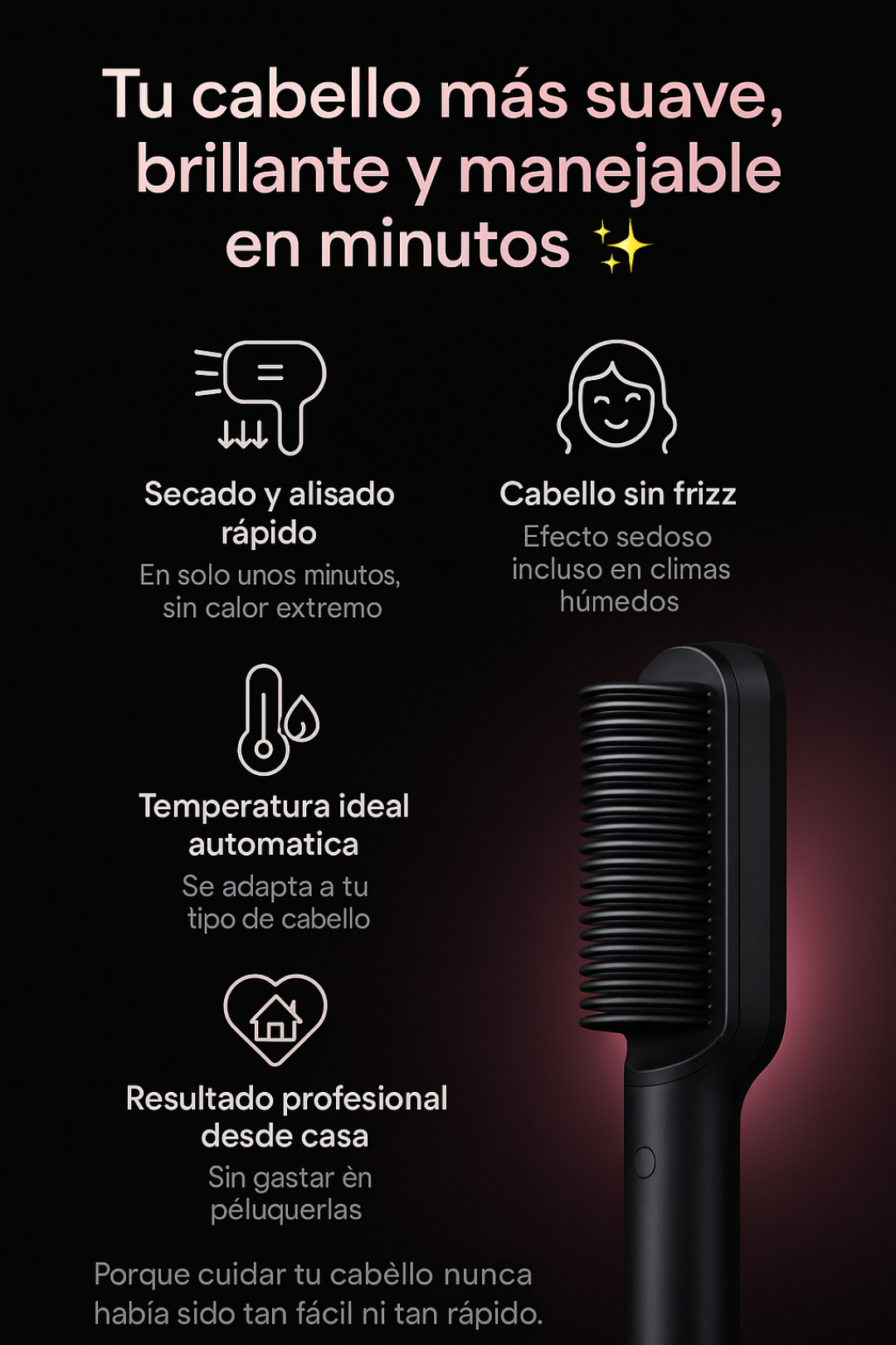 Cepillo 2 en 1 Plancha/Secador-Cabello liso, brillo inmediato