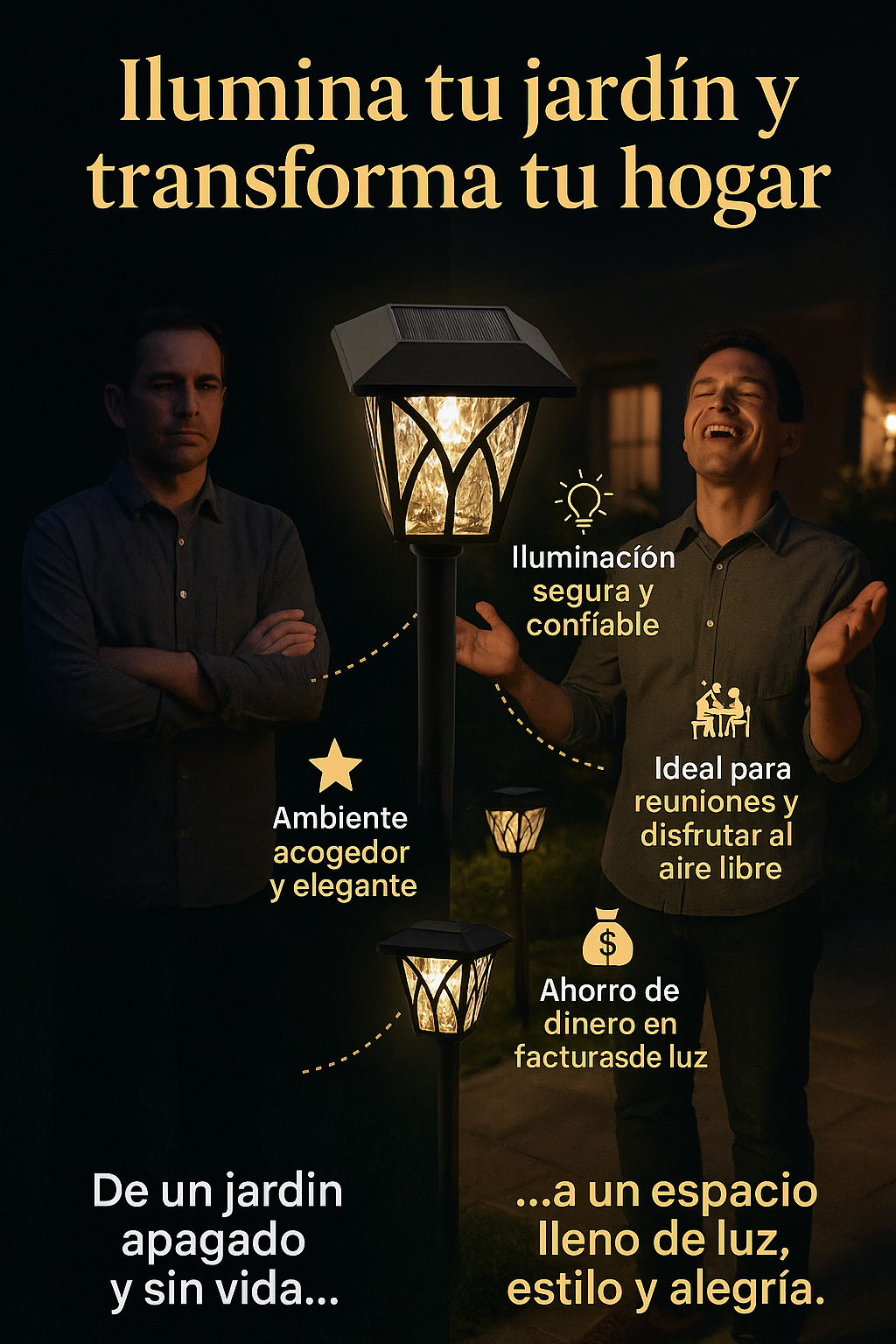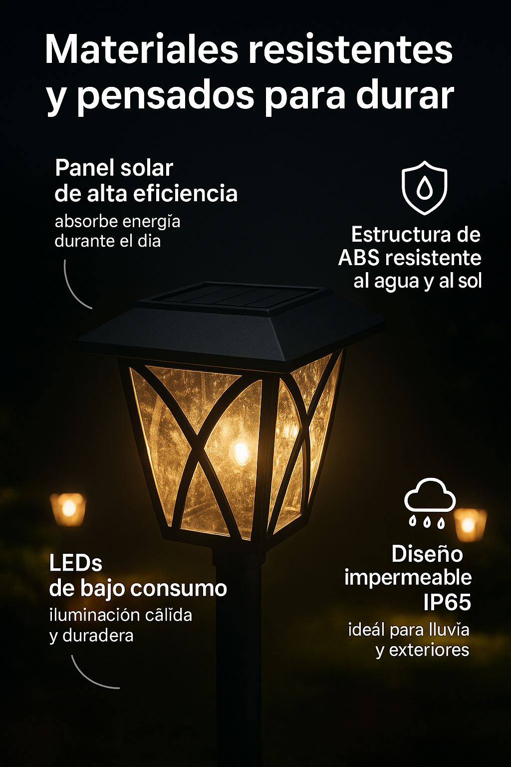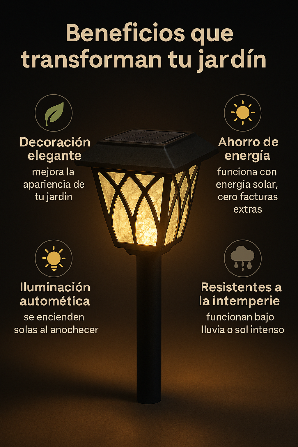 ⭐⭐⭐⭐⭐ “La luz es cálida y elegante, mi jardín ahora se ve increíble en las noches.”
